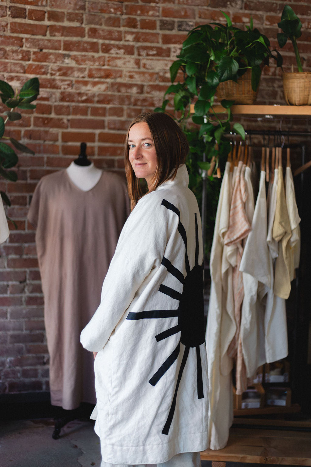 The Rose Jacket feels like a cozy embrace from your favorite blanket (if your favorite blanket was made from organic hemp). Double lined construction, two roomy pockets, and incognito ties makes this a coat you'll want to slip into as often as you can. Pro tip: This also makes a very nice robe. The Sunburst design is a unique style I created to make you feel like a walking piece of midcentury art. Need a size you don't see here? I'm happy to accommodate! Just send me an email: botanicalclothing@gmail.com