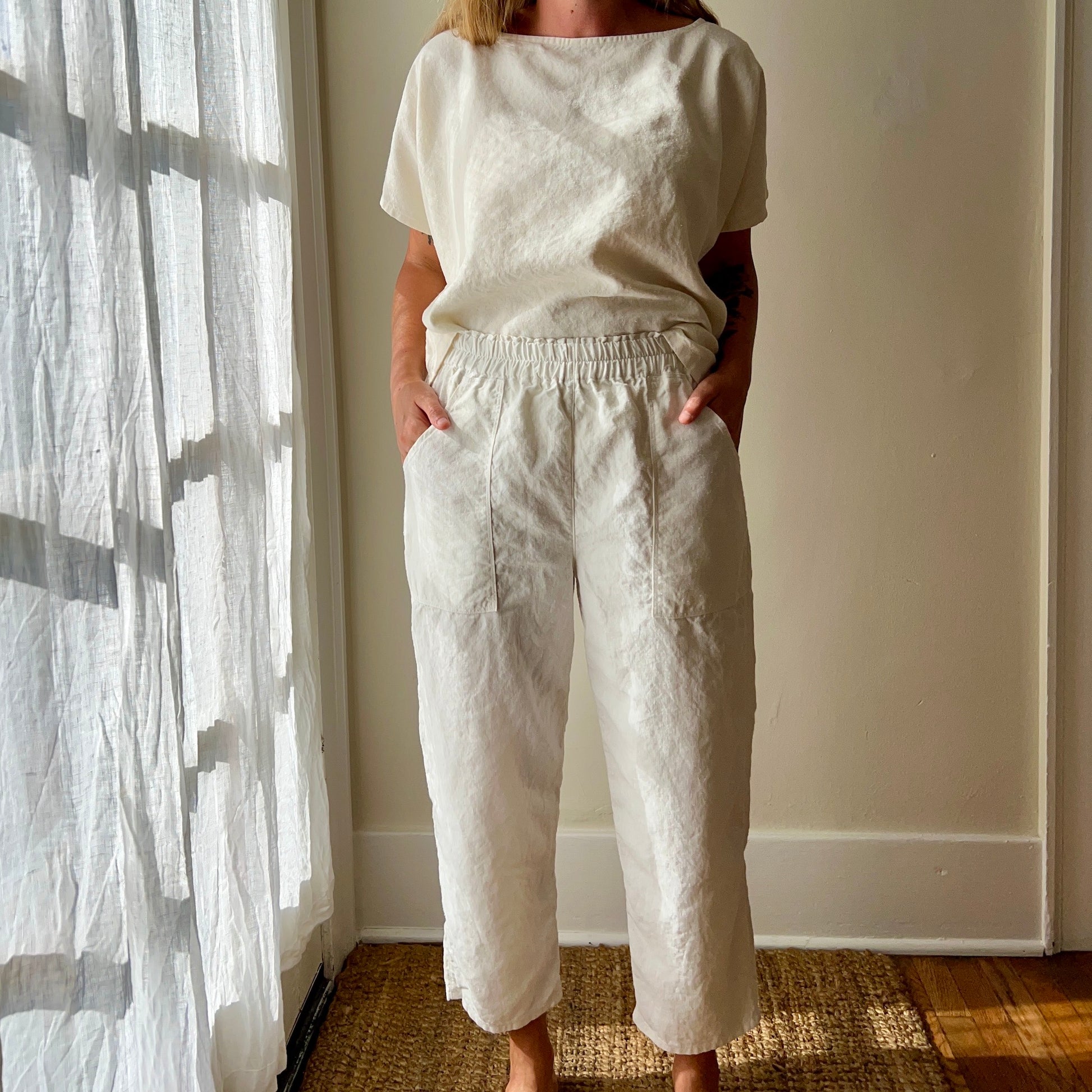The Yucca Pants are perfect for those days you don't really want to wear pants. They're comfortable, they look good, and they're made from organic hemp, which is regeneratively grown, propagates quickly, and requires little water to grow. Front and back pockets, relaxed thigh with slightly tapered leg, and a stretchy, two tiered elastic waistband. Need a size you don't see here? I'm happy to accommodate! Just send me an email: botanicalclothing@gmail.com